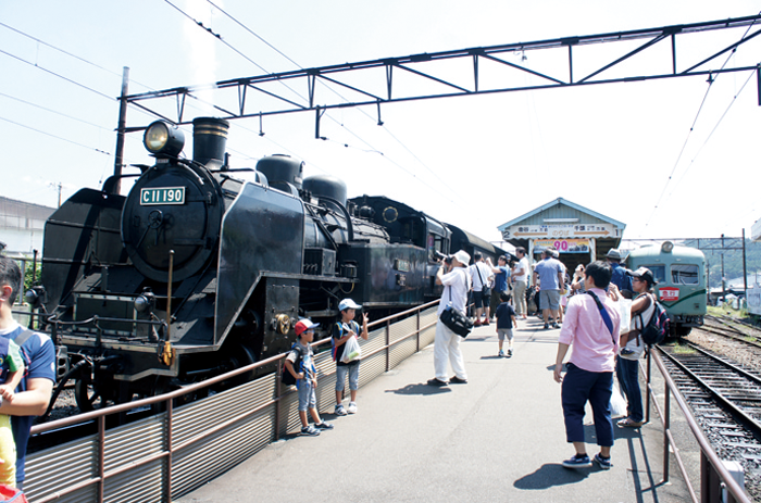 | ★わくわくポイント★ 間近で見る SL は迫力満点!出発時刻の11:52に間に合うように出かけましょう。ほか、併設のプラザロコや転車台でもSLとふれあえます。※運行日はHPで確認してください。 |