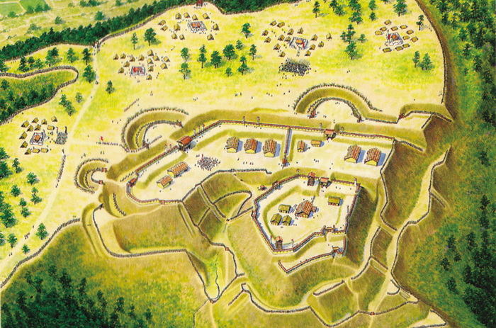 | ★わくわくポイント★ ぐるりとあいた大きな穴は、敵からお城を守るために昔の人が掘った溝。敷地内には富士山や駿河湾が見える絶景ポイントもありますよ。探してみましょう。 |
